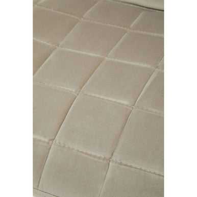 This dining chair is upholstered in sumptuous mink velvet. The quilted seat and backrest of this chair are enhanced by fine stitching. The chair is complete with splayed gold finish legs, contributing to the clean aesthetic of the modern design.