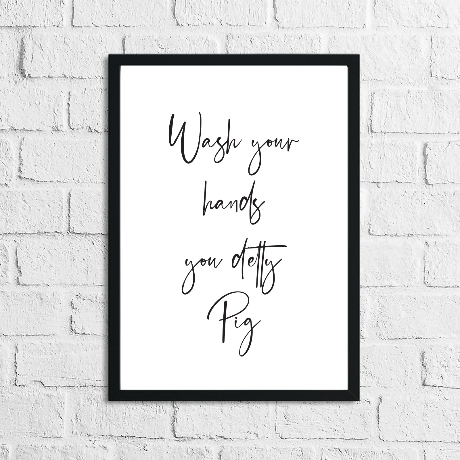 Wash Your Hands You Detty Pig Funny Bathroom Wall Decor Print