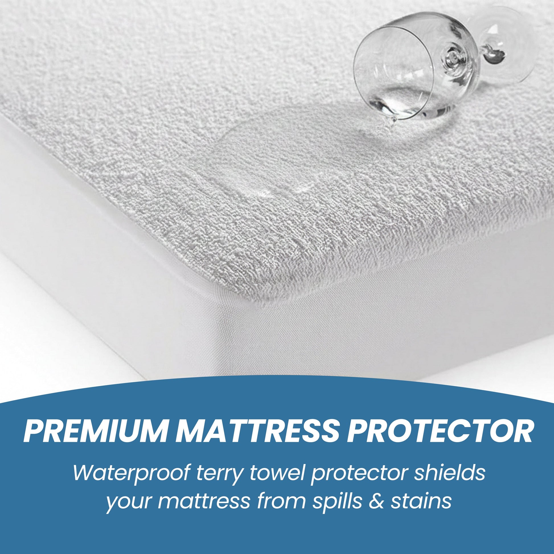 Description: The top layer of the mattress protector is made of cotton terry towelling, known for its exceptional absorbency. This feature ensures that any spills or accidents are quickly absorbed, keeping your mattress dry and clean.