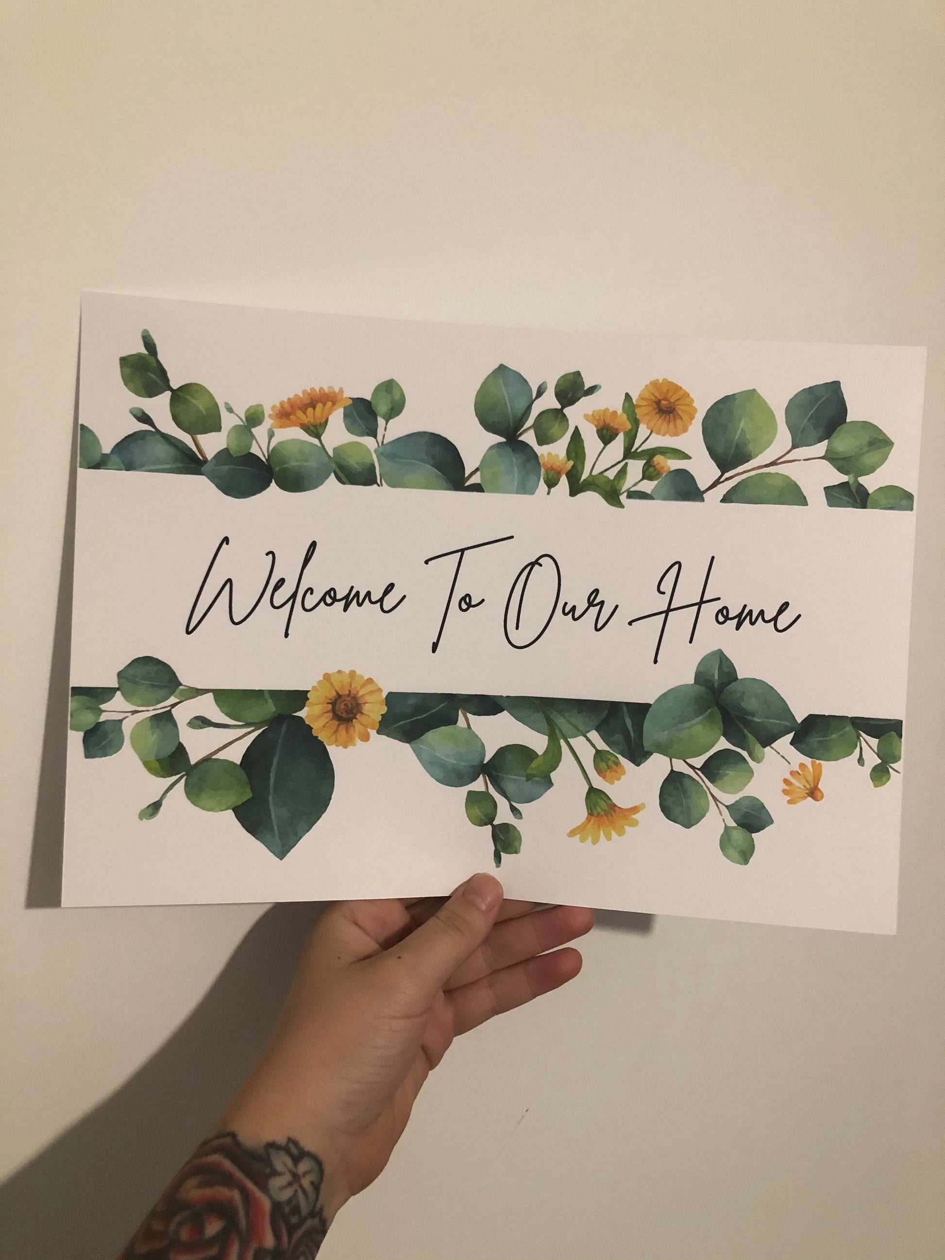 Welcome To Our Home Green Eucalyptus Spring Floral Landscaped Wall Decor Print
