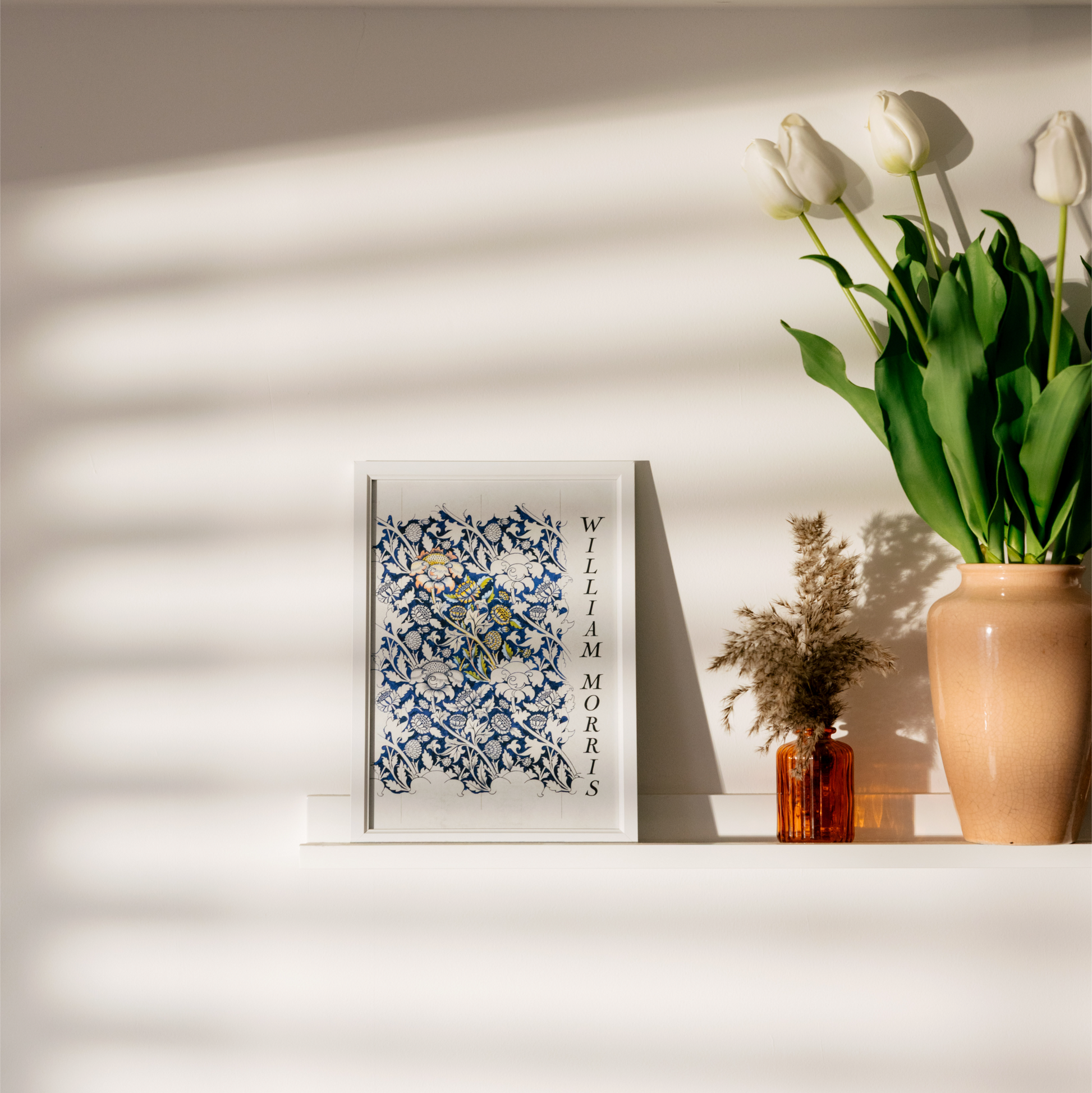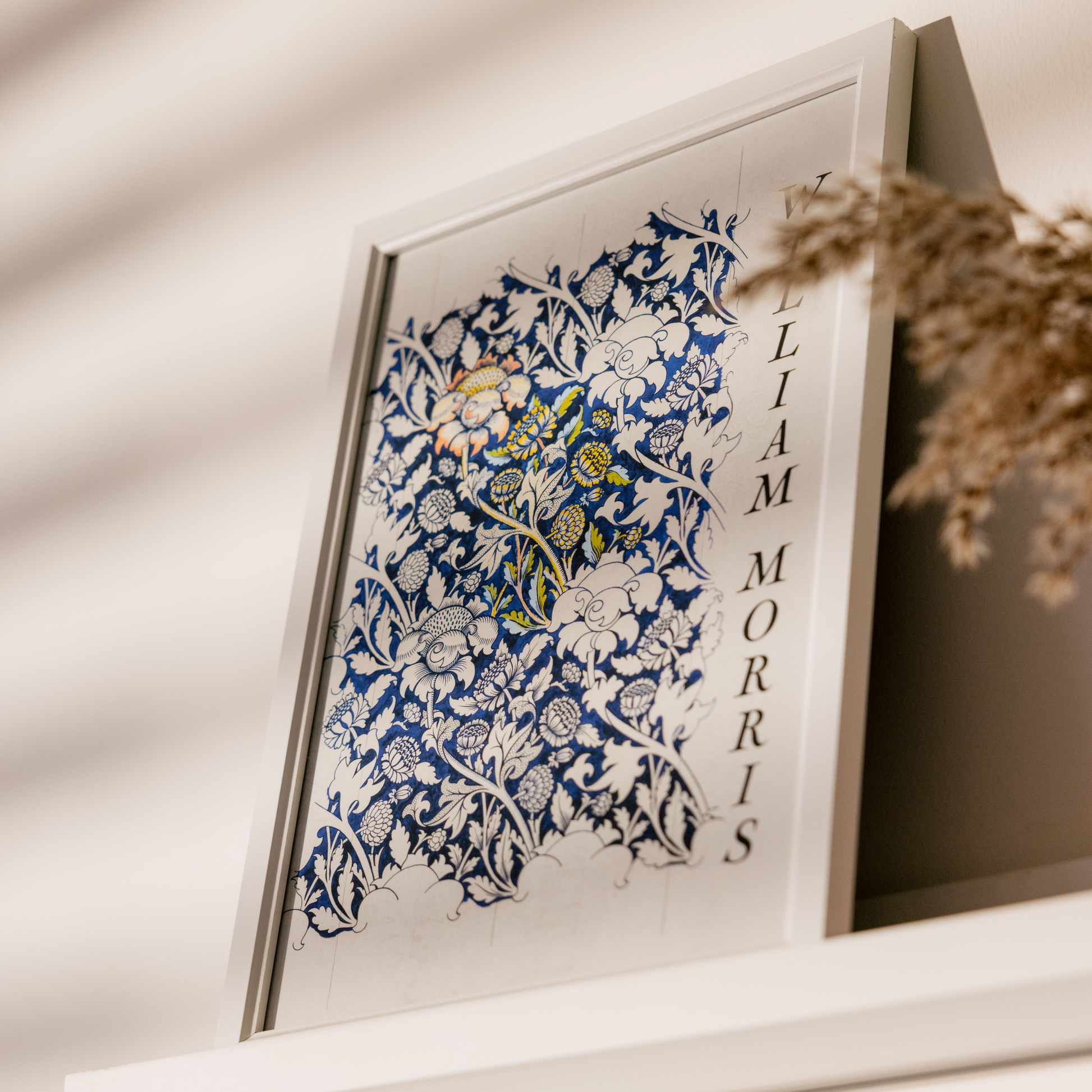The William Morris Wey Print features intricate, flowing patterns inspired by nature, with bold, organic lines and rich, earthy tones. This timeless design adds a sense of elegance and charm to any space, seamlessly blending with both modern and traditional interiors, the Wey Print brings natural beauty and sophistication to your home.
