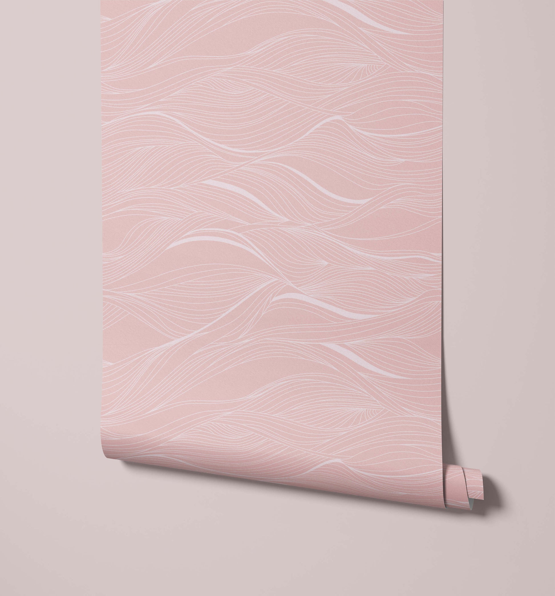 This wallpaper features a soft, flowing abstract wavy line pattern. The delicate line work adds a sense of movement and texture, bringing a subtle yet dynamic touch to any space.