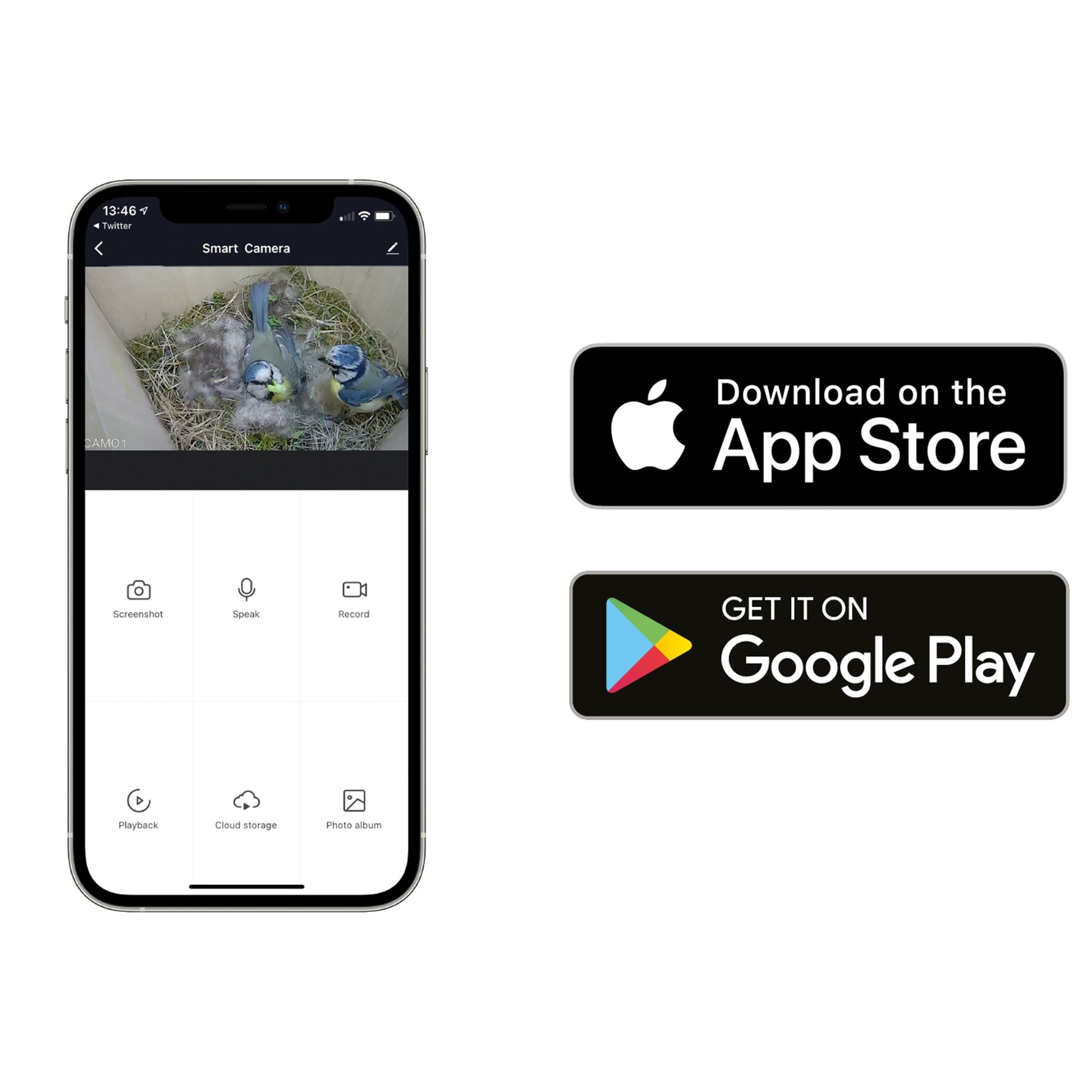 Use the official Green Feathers app to stream live or watch pre-recorded footage in HD, and share the best bits with your friends and family. Please note: this listing is for the camera by itself. Check out our WiFi Bird Box HD Camera Starter Pack if you need a home for your feathered friends too.