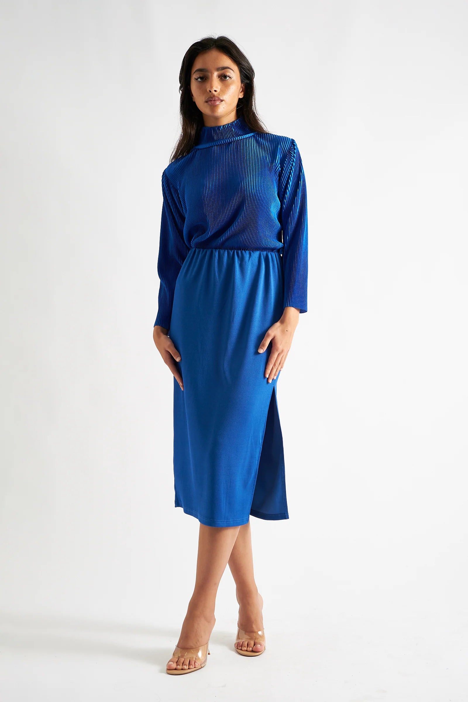 With the Wilson Fine Rib midi skirt, you can have both style and comfort! This versatile cobalt blue pencil skirt features an elasticated waist and side split for a perfect fit in any setting. Say goodbye to uncomfortable skirts and hello to effortless style!