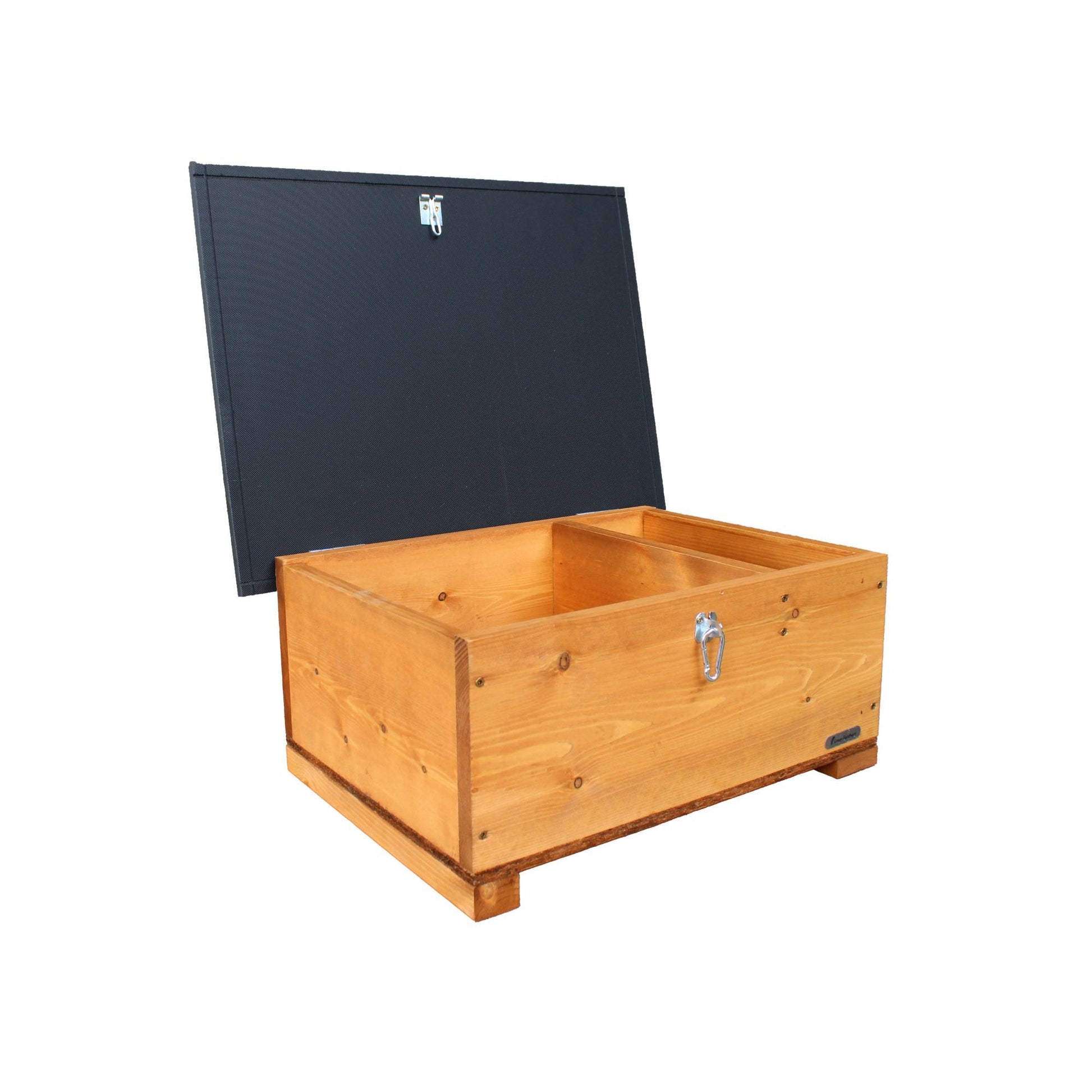 Our hedgehog box features an eco-roof made of recycled composite materials with the added benefit of being completely waterproof and rot-proof. It's built with a sloping roof for water drainage along with additional grooves on the top of the side panels. The lid is hinged and lockable. Ventilation is provided by a clog-proof, narrow gap under the roof along the front.