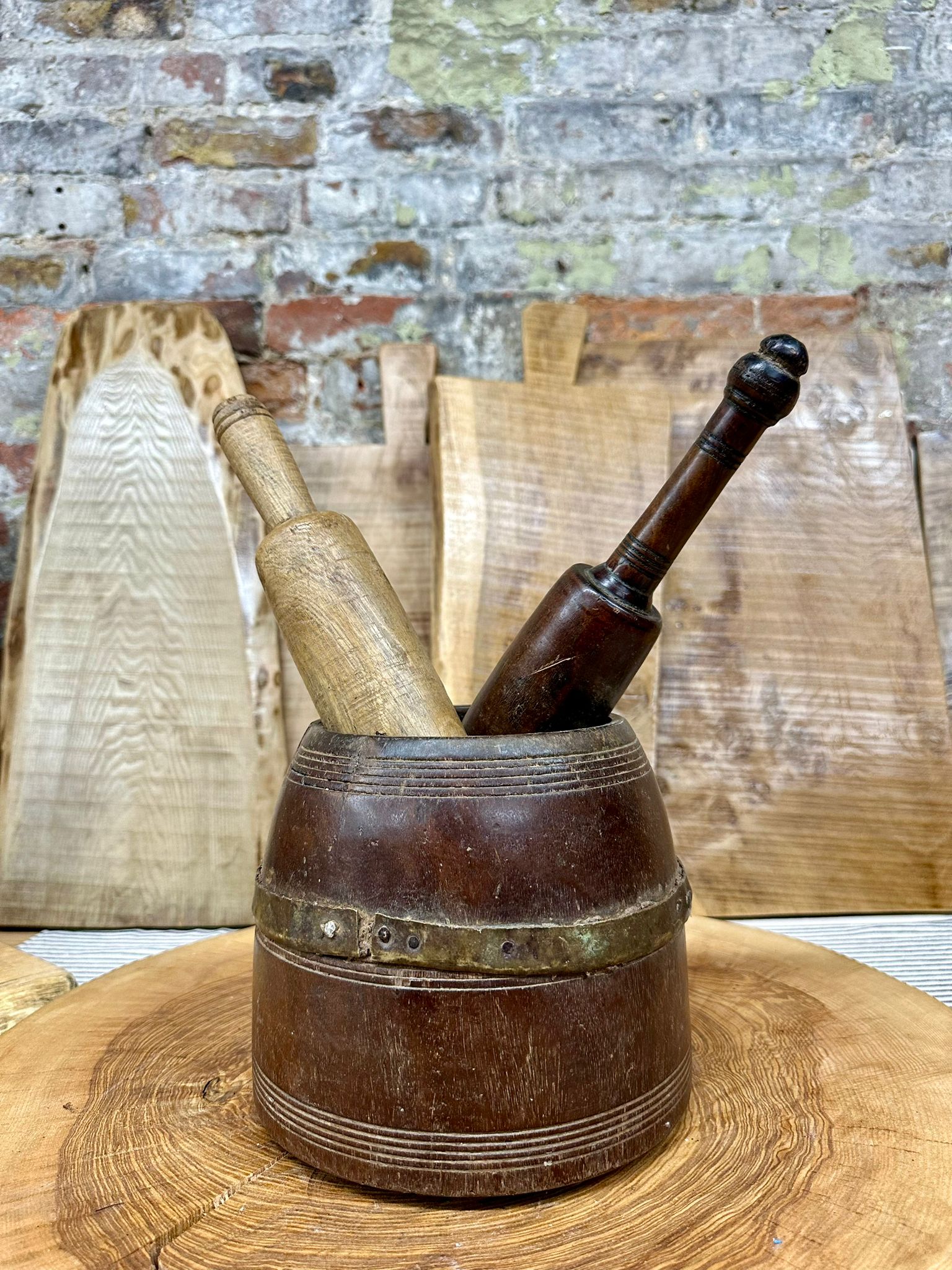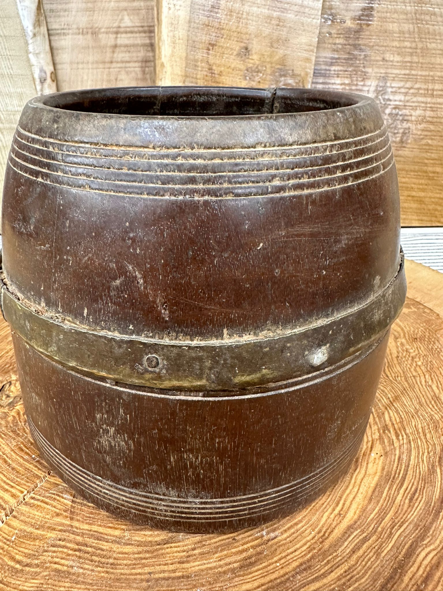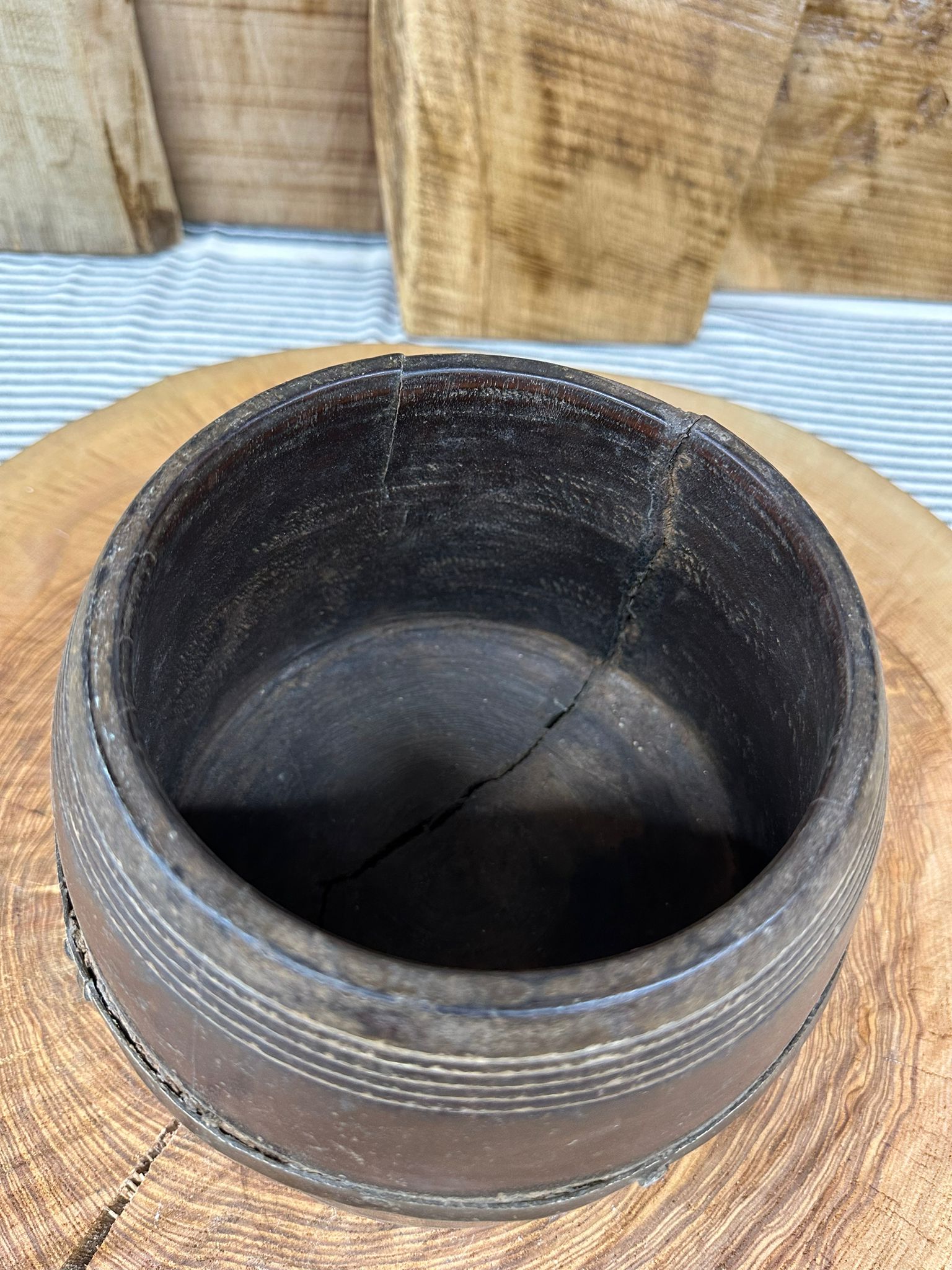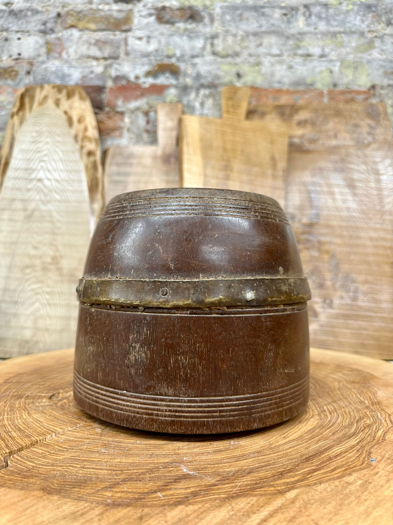 This old handmade wooden storage pot has been sourced from India and is perfect for keeping your kitchen organised. Could be used as storage space for your herbs, plants, stationary or cutlery.