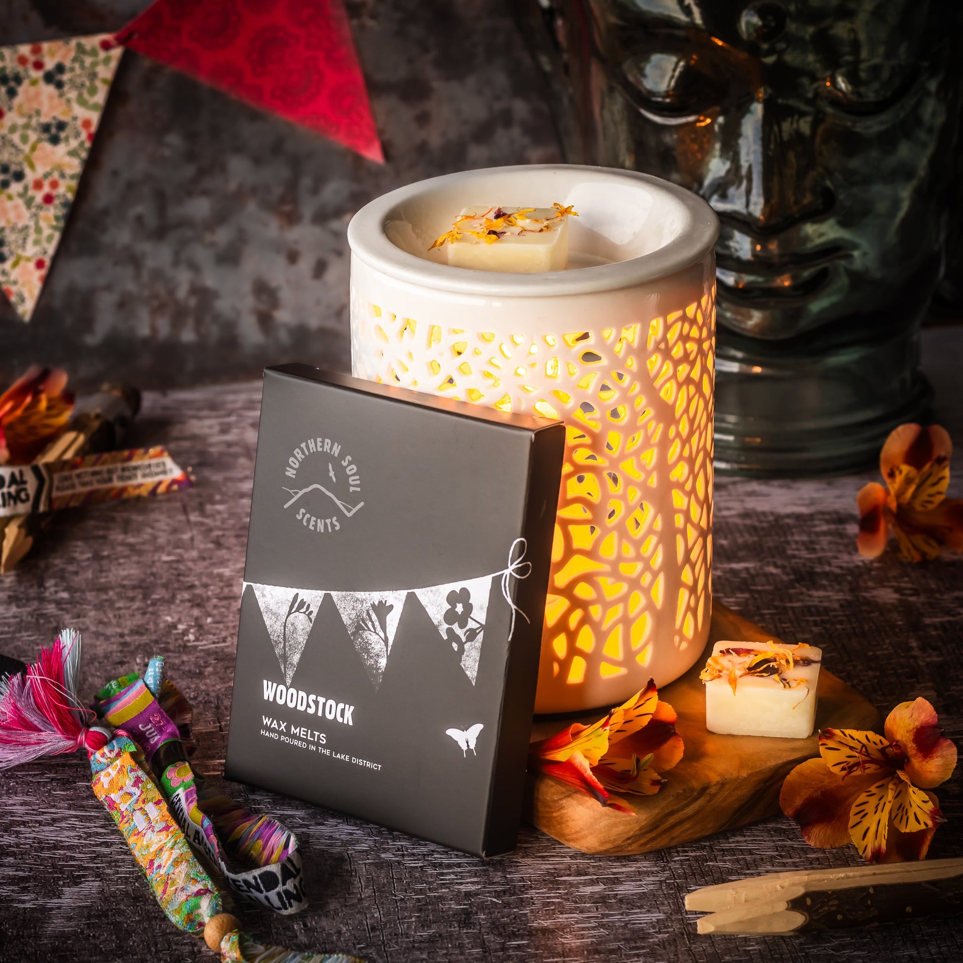 Reminiscent of incense flowing out from festival tents, accompanied by the drifting floral aroma from the flowers in your hair. Transport yourself back to the year of peace, love and festivals. A base of nag champa, a sumptuous Indian incense, with amber, sandalwood and patchouli, topped off with floral hints of freesia and ylang ylang.