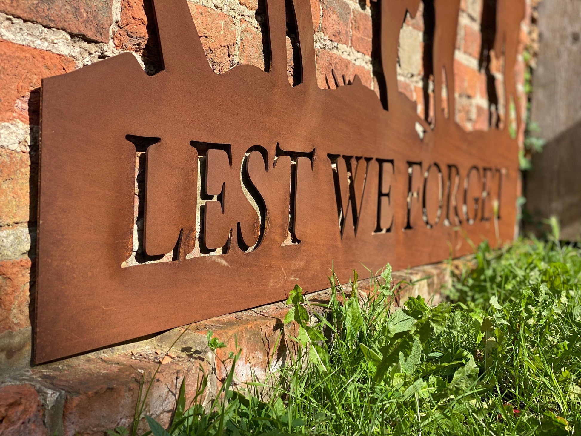 XXL Rusty metal lest we forget soldier scene garden decoration.