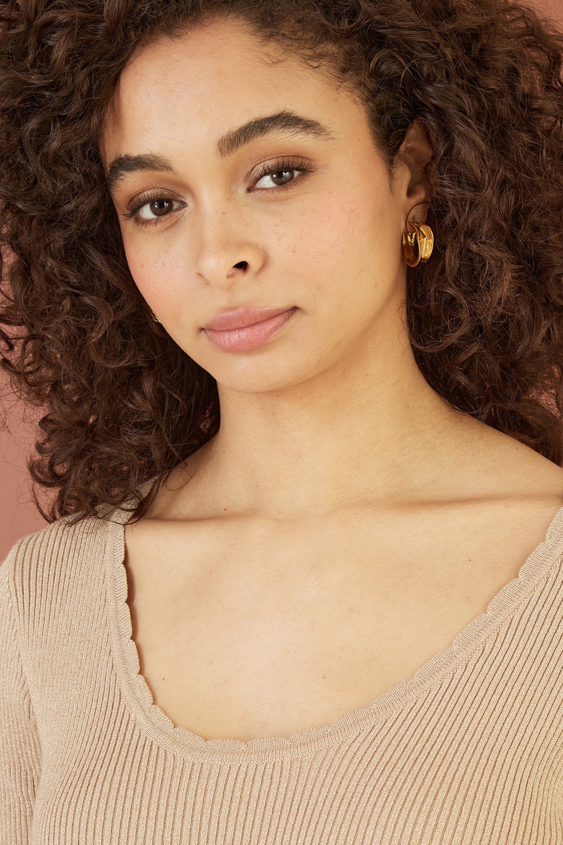 Yumi Gold Metallic Knitted Ribbed Top