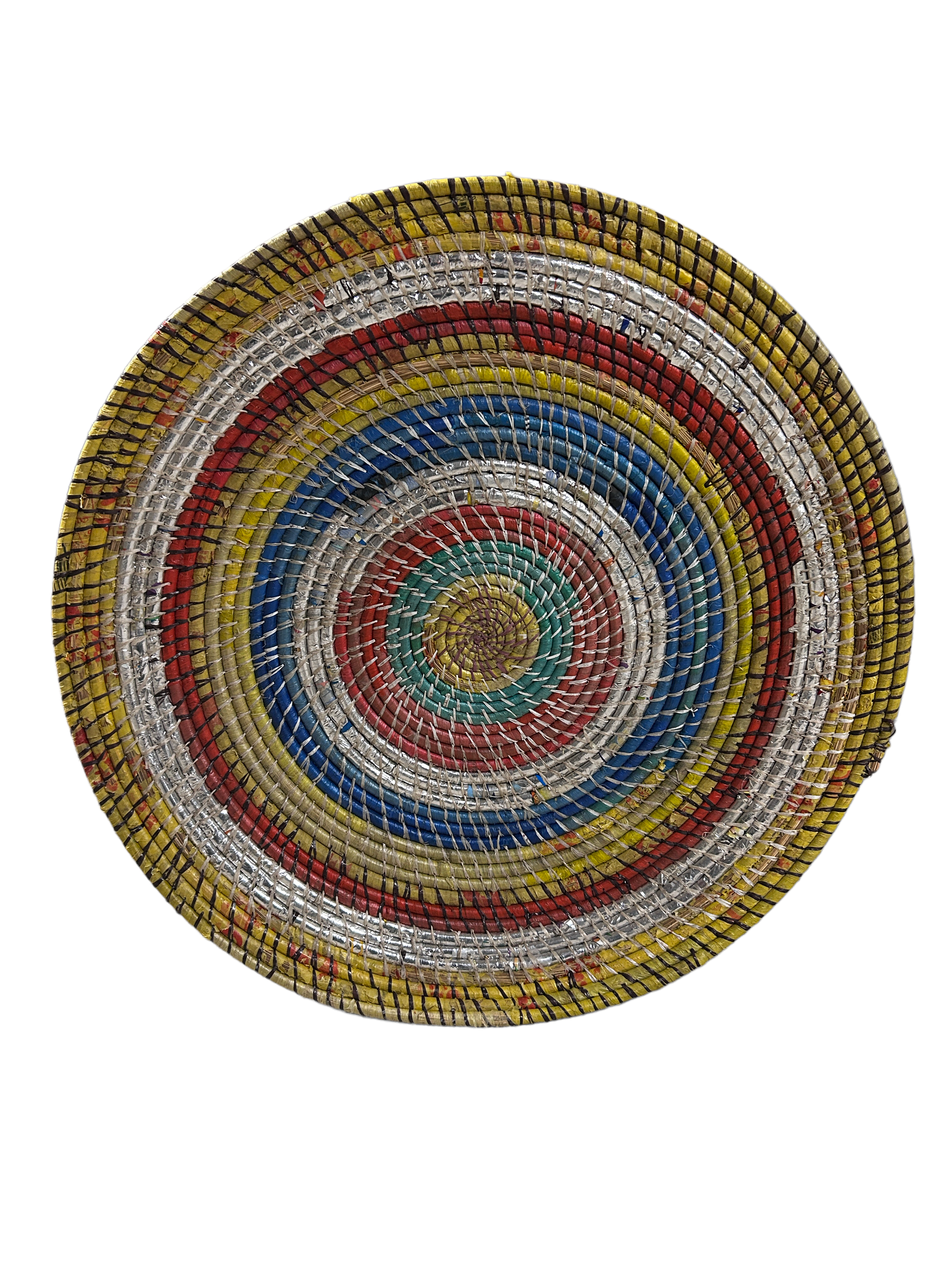 These baskets are a little different to the standard natural design, instead of the natural brown colours these baskets are woven with recycled plastics and paper creating an explosion of colour for any interior wall project.