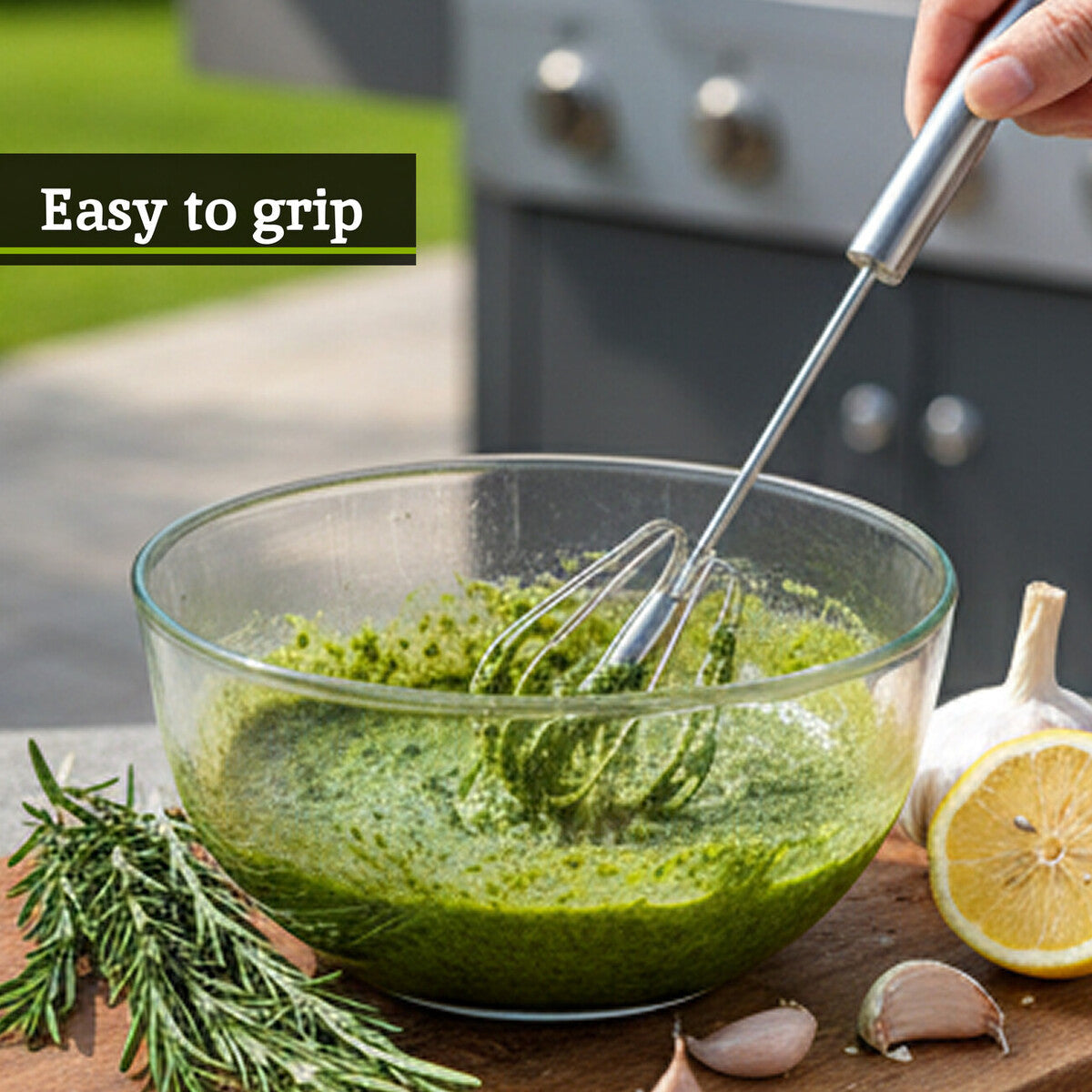 Beat eggs for scrambles directly in a bowl, then whisk a quick vinaigrette for salad. At the hob, finish pan sauces with a few presses for a smooth gloss. Keep the whisk near the cooker, where its shorter shaft manoeuvres easily around pots. Hang from a rail for instant access.