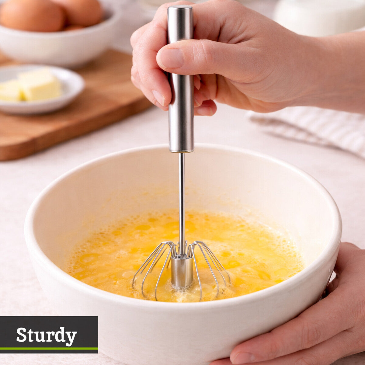 - Excellent for eggs, light batters, dressings, and finishing sauces
