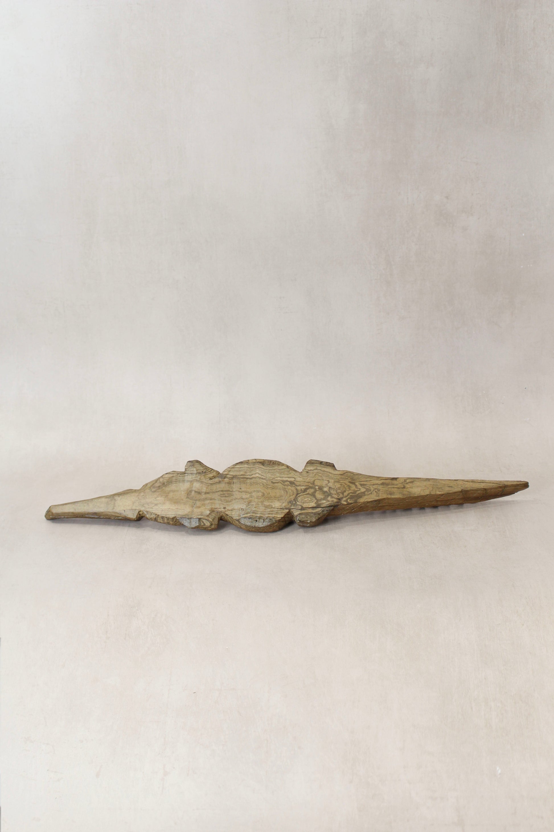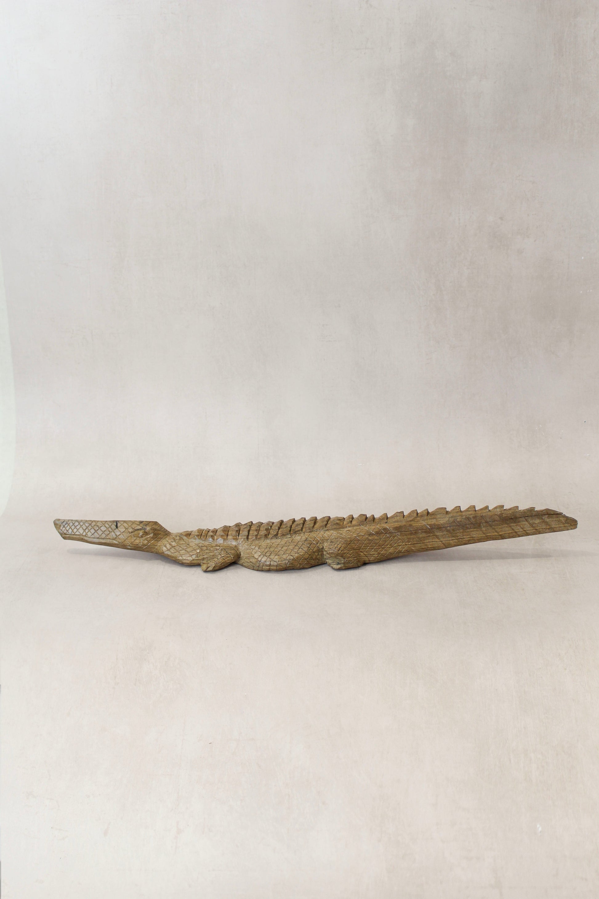 These hand carved life-size baby crocodiles are hand carved from Kola wood. This last remaining one has a curved tail at the end.