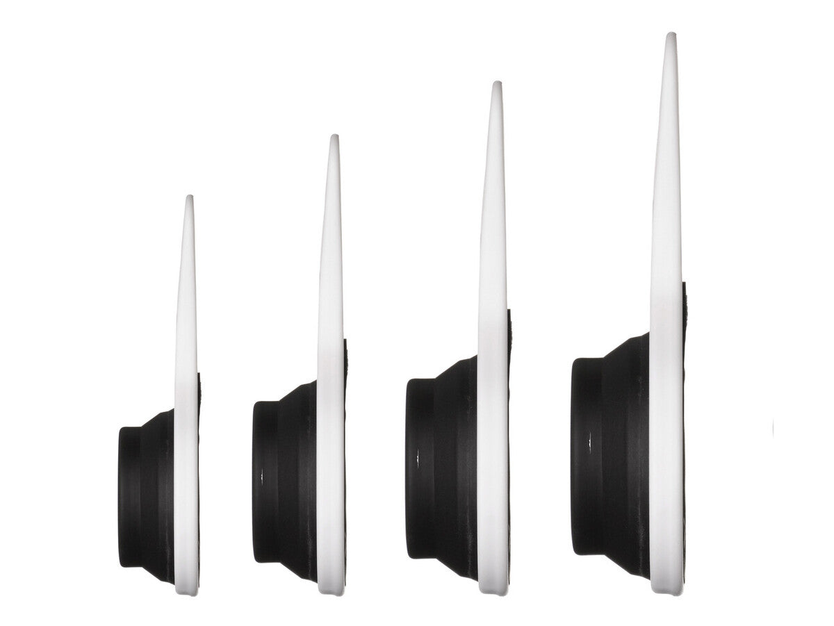 - Four-piece collapsable silicone measuring cup set in black and white.