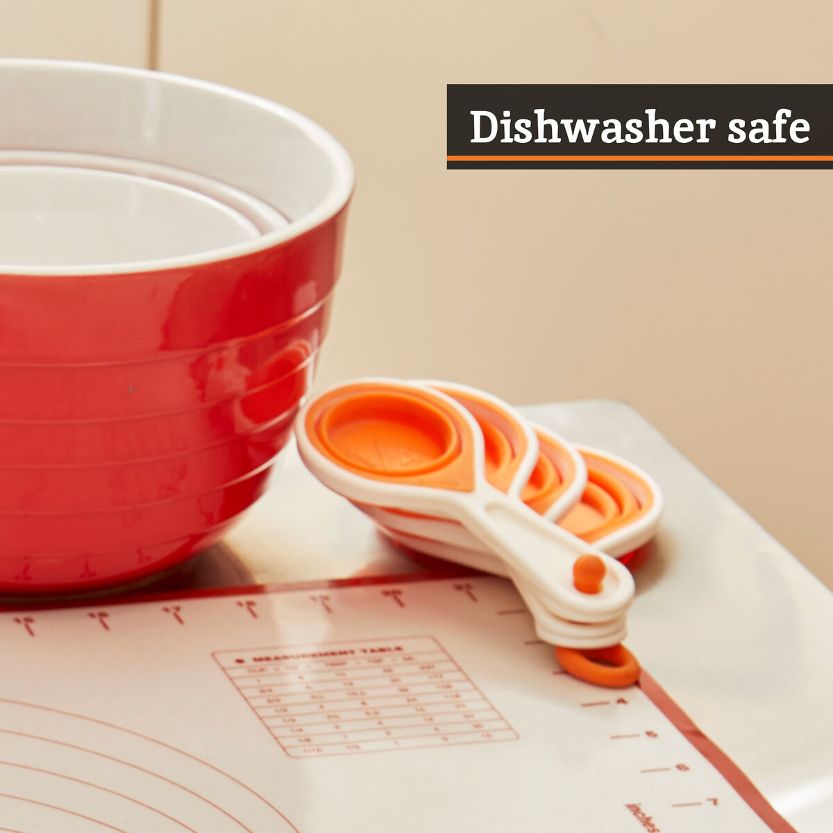 Save space with Collapsible Measuring Cups, designed with easy-to-read measurements for ¼ cup, ⅓ cup, ½ cup, and 1 cup. Dishwasher safe and easy to clean, these cups are a practical addition to your kitchen.