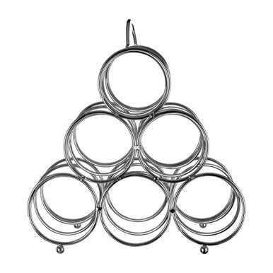 Its sturdy wireframe design is given a sleek chrome finish which coordinates easily with metallic kitchen appliances and utensils. A pyramid is formed from connected circles, the bottles held securely thanks to the triple layered construction. Rounded feet protect kitchen worktops from damage, while a handle at the top makes it easy to lift and carry.