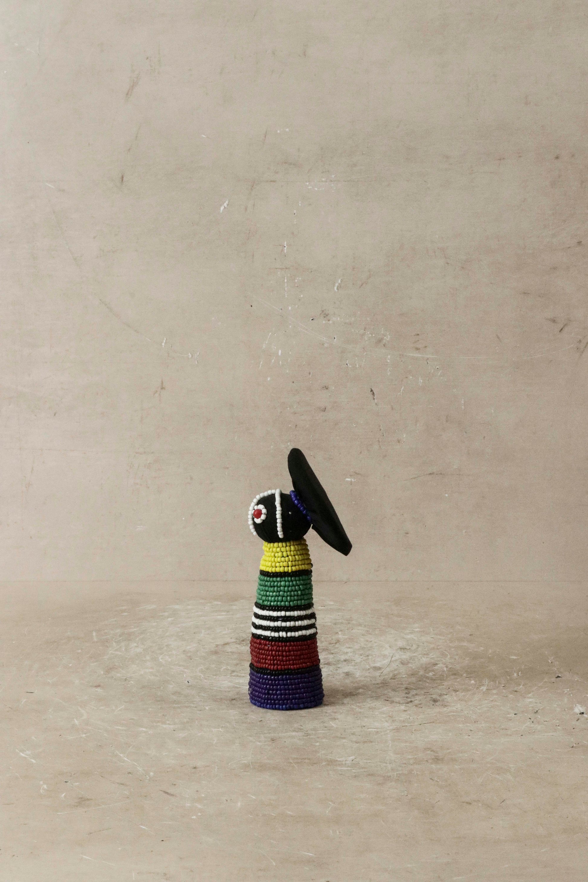 The Ndebele, one of the smallest tribes in the region, are renowned for their vibrantly painted homes and equally colorful attire. The intricate beadwork on these dolls reflects the detailed craftsmanship seen in the traditional clothing of Ndebele women.