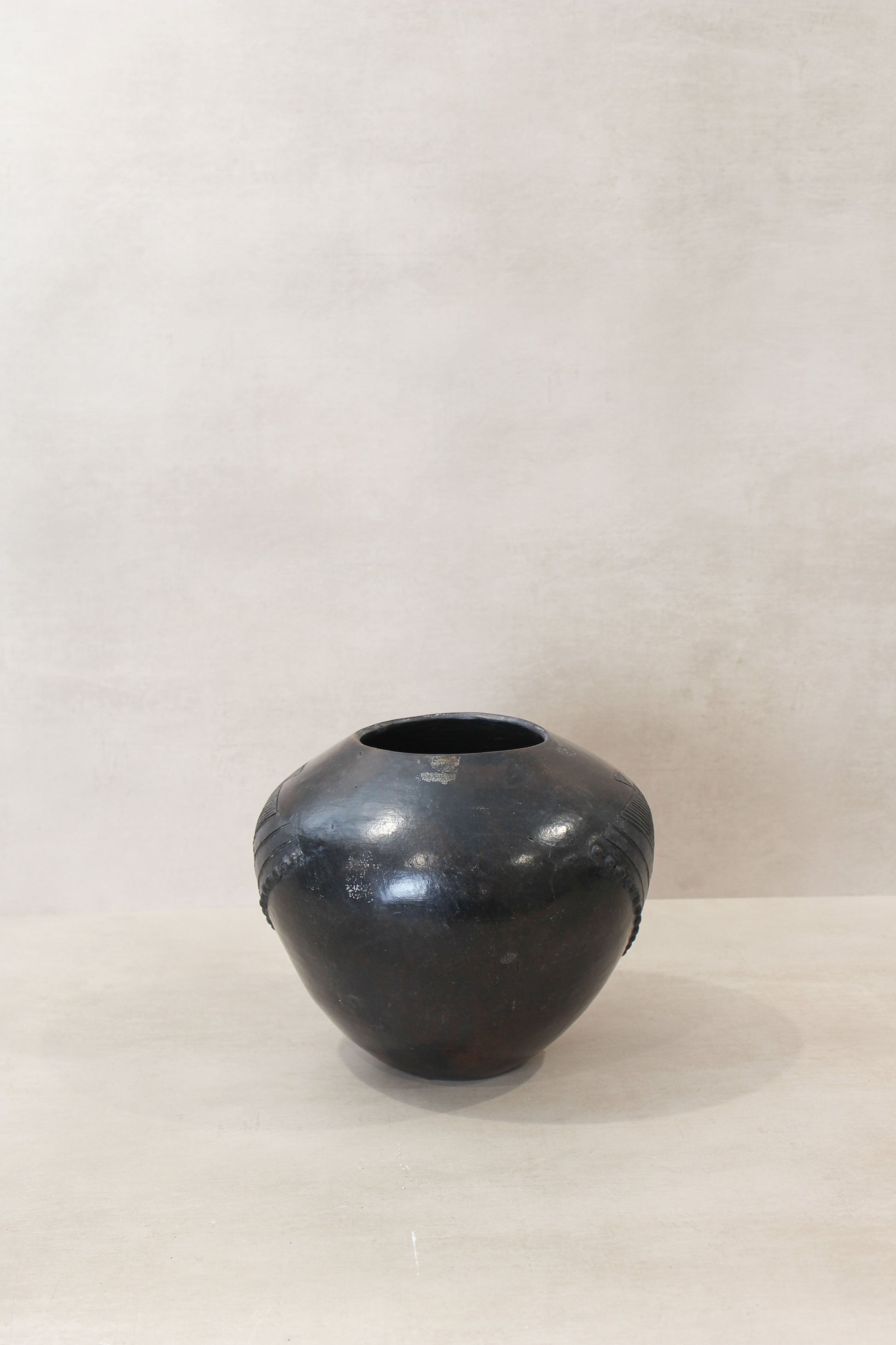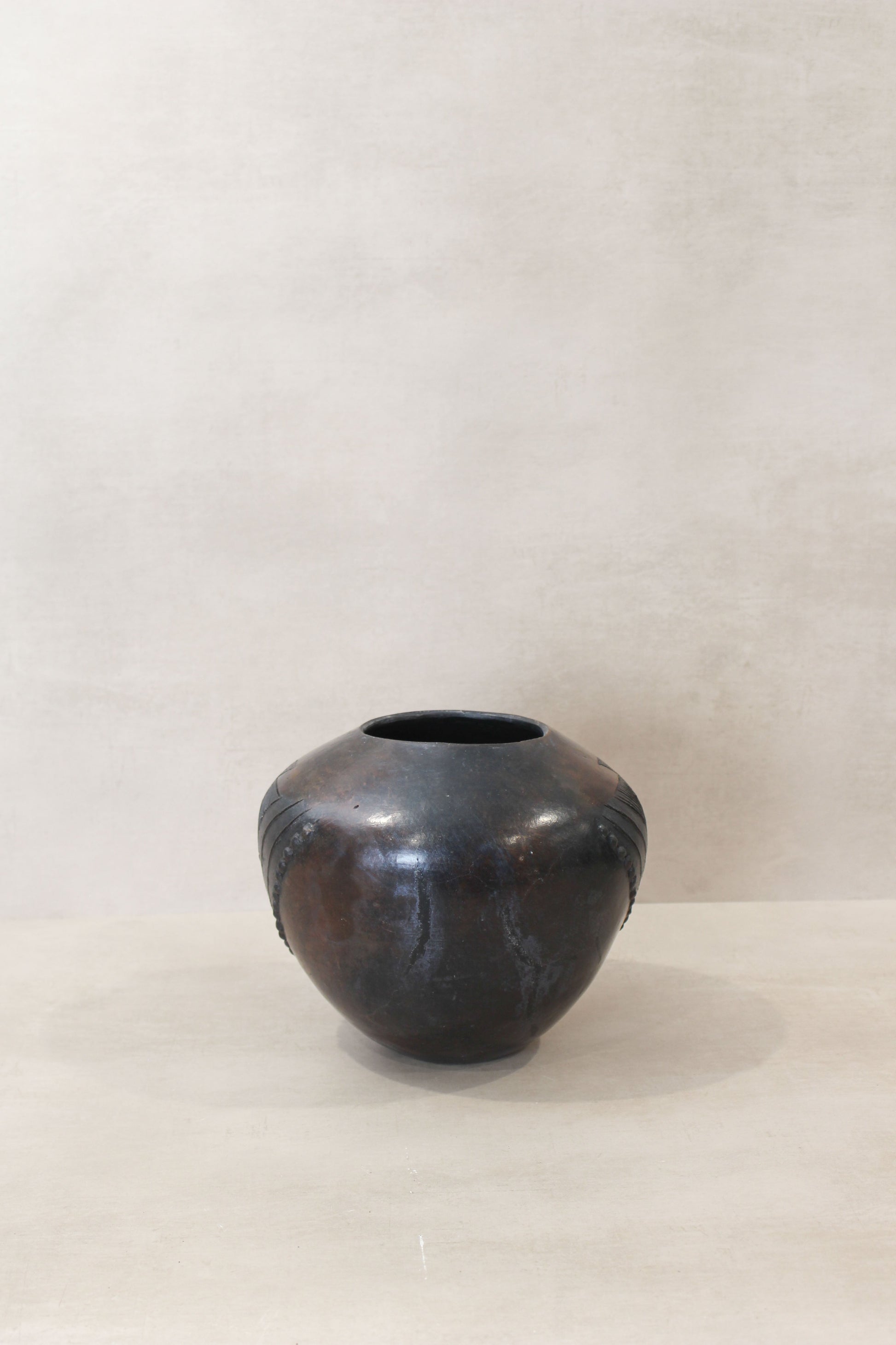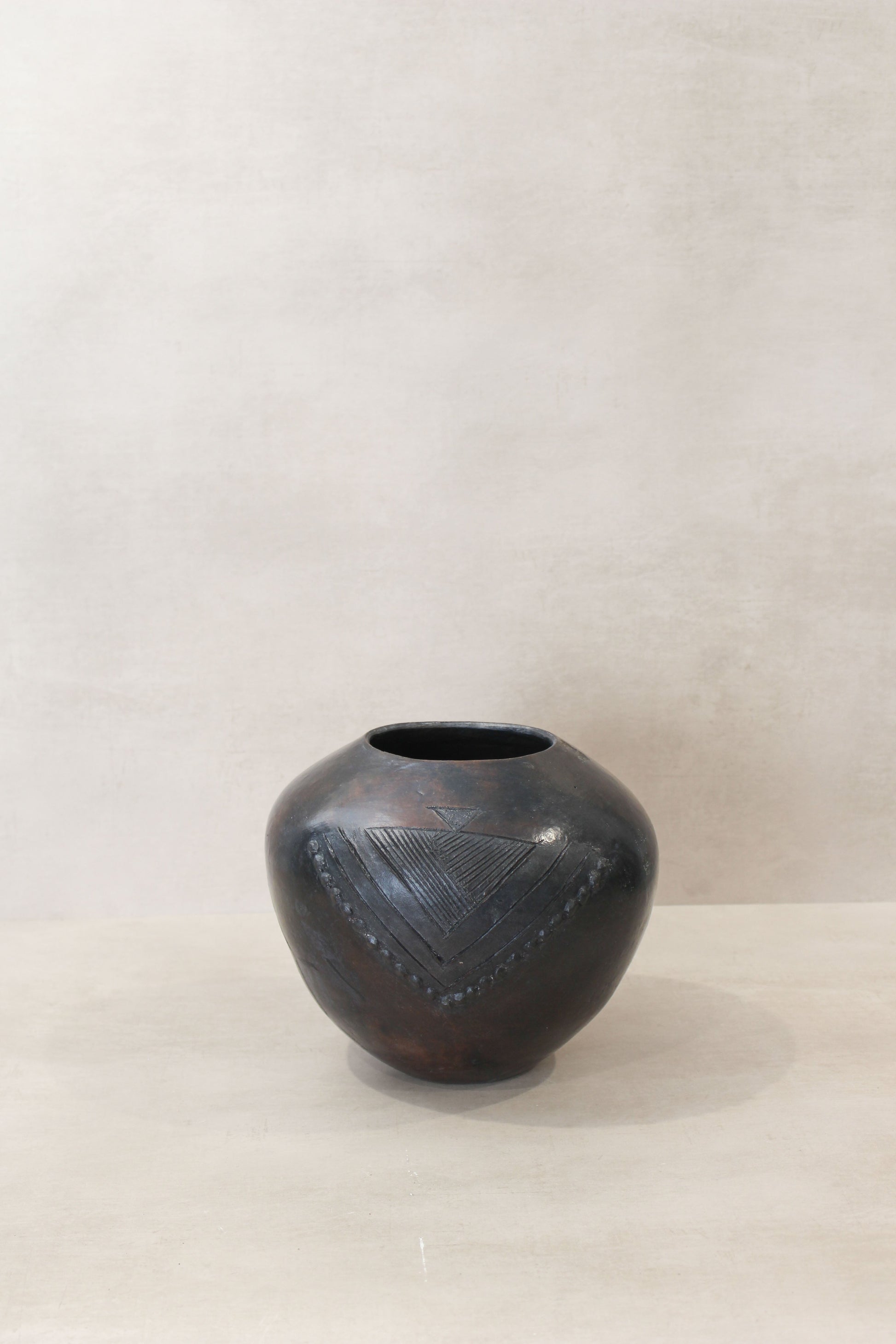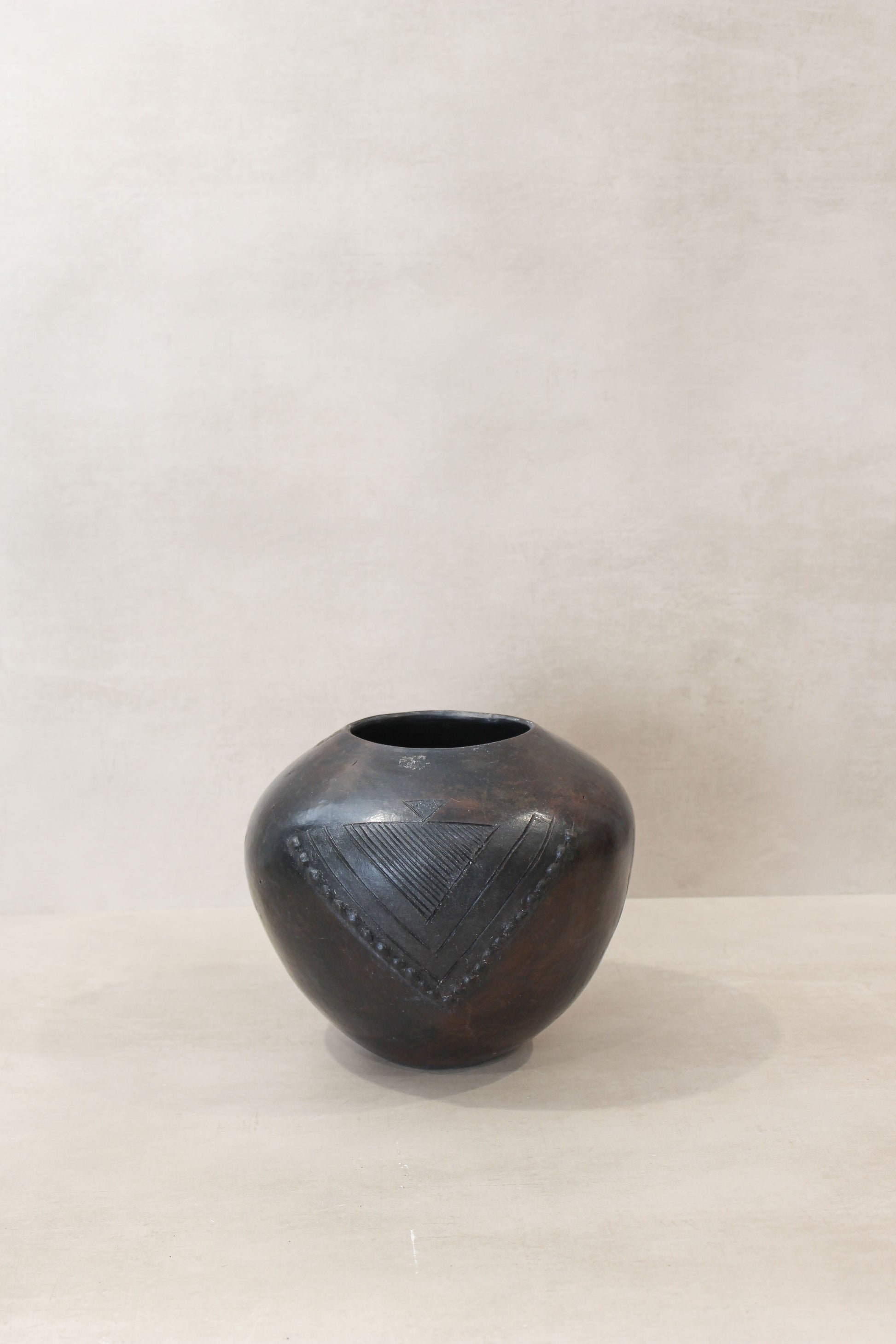The Zulu pot, originating from South Africa, holds a distinguished role in the traditional practices of the Zulu people, primarily as vessels for the storage and consumption of beer. Crafted meticulously from clay harvested from the banks of local rivers, these pots undergo a meticulous hand-shaping process, followed by careful smoothing, culminating in firing over open-air fire pits. This time-honored technique not only imparts durability but also infuses each vessel with a distinctive character reflective of its artisan's cultural heritage, rendering every pot a unique testament to the rich tapestry of Zulu tradition.